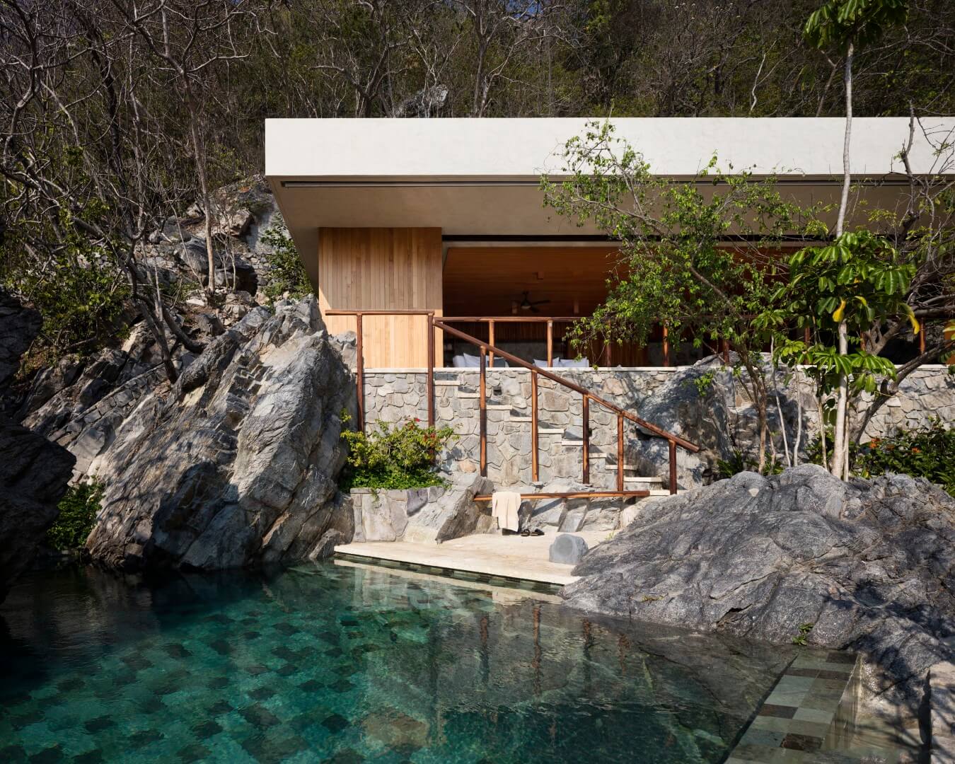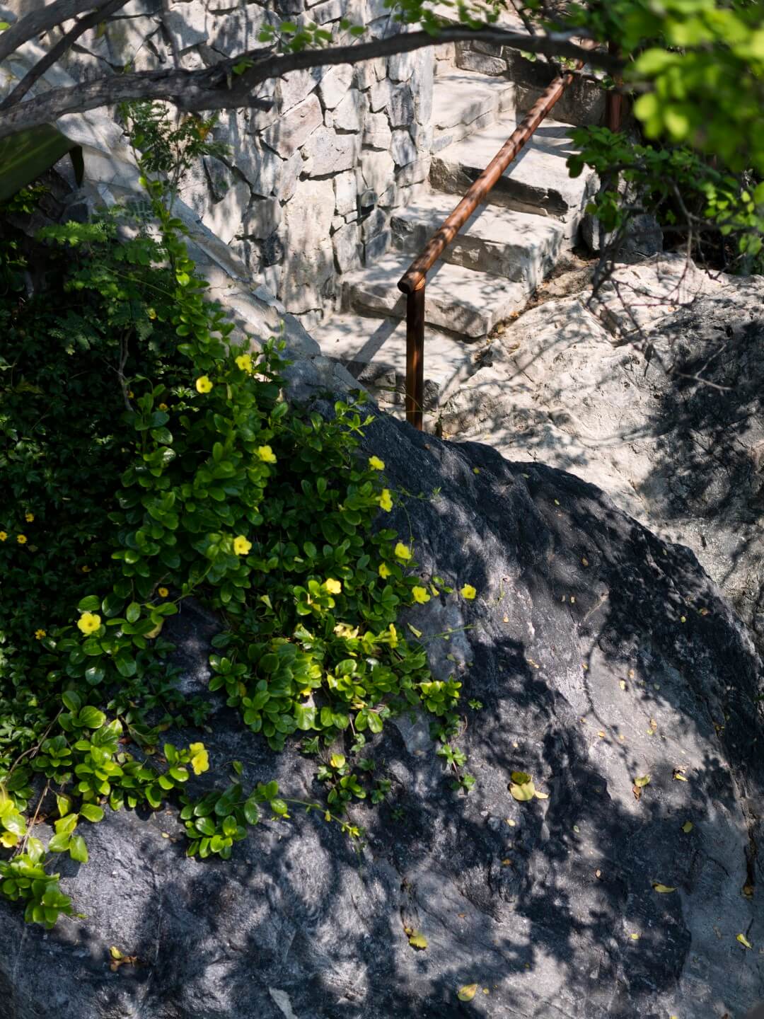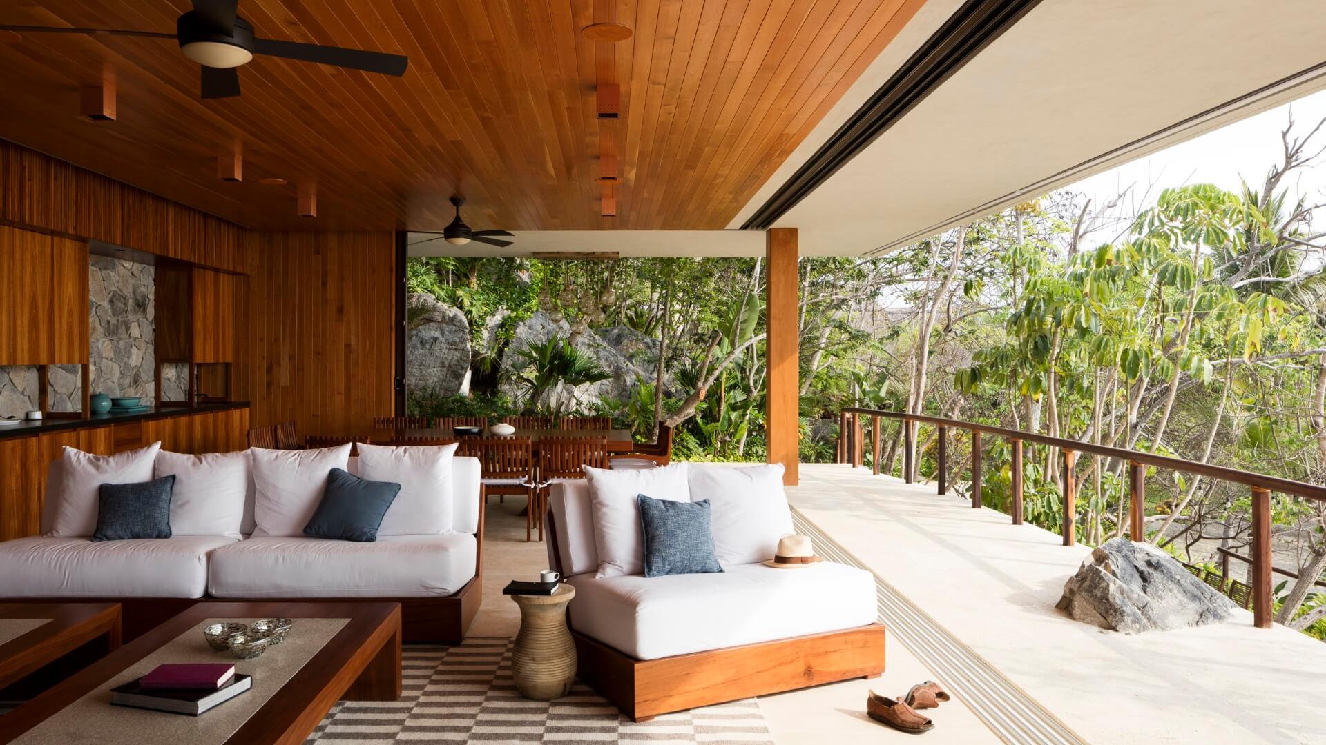 Para los pisos se utilizó duela de nogal, cantera “Santo Tomás (en acabado pulido, sandblasteado y busardeado al ácido), y piedra “San Andrés” en pisos exteriores.
