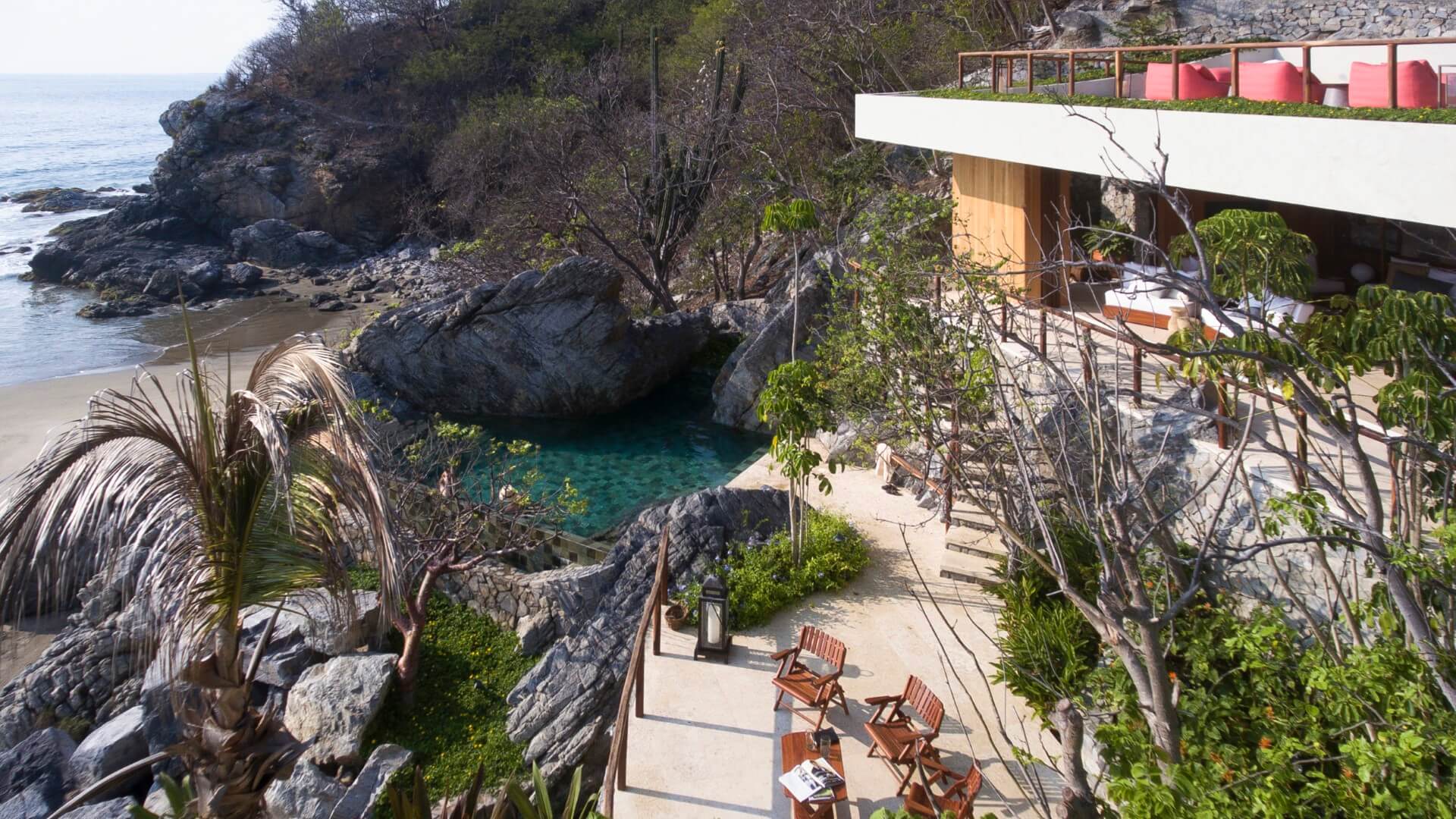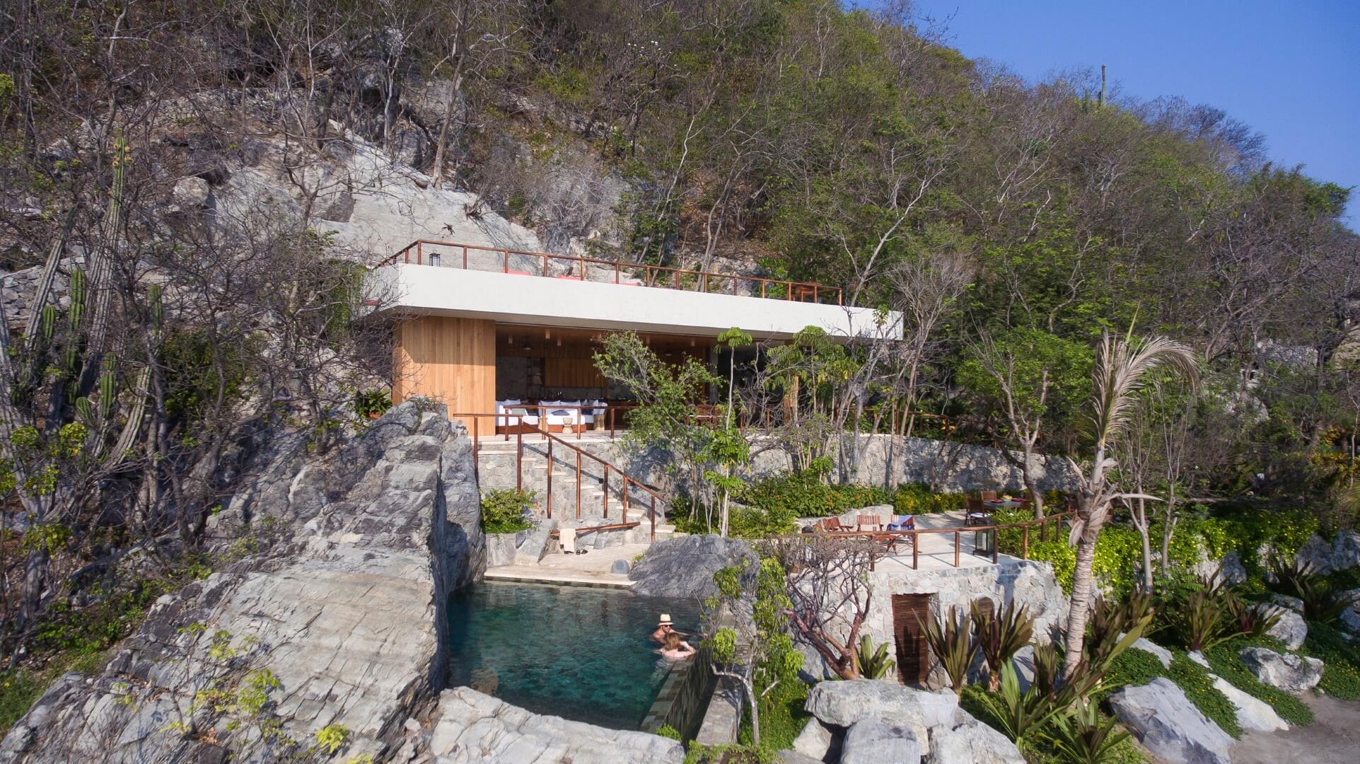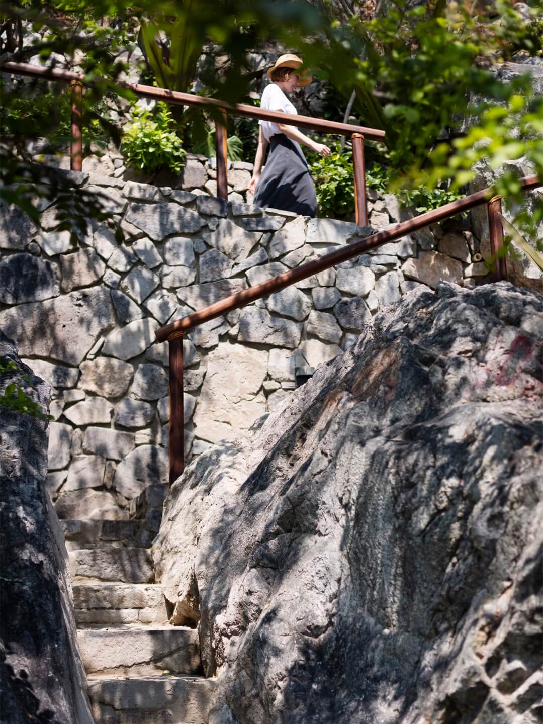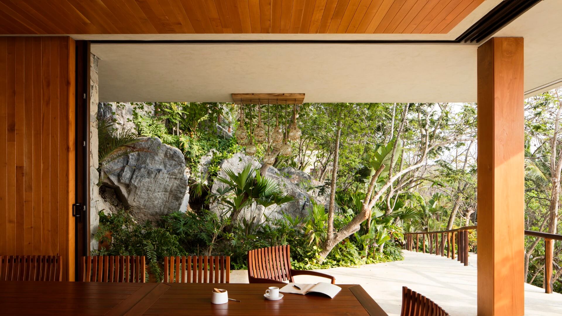 Para los pisos se utilizó duela de nogal, cantera “Santo Tomás (en acabado pulido, sandblasteado y busardeado al ácido), y piedra “San Andrés” en pisos exteriores.