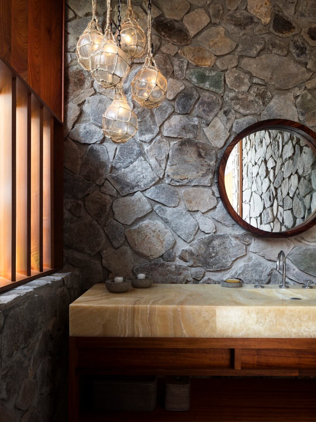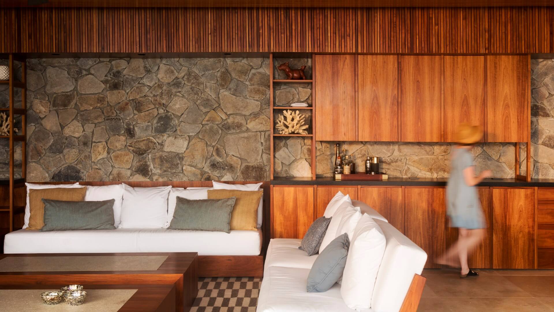 En ciertas áreas se usaron revestimientos de nogal, mientras que para los baños se usaron mármoles carrara y white rhino.